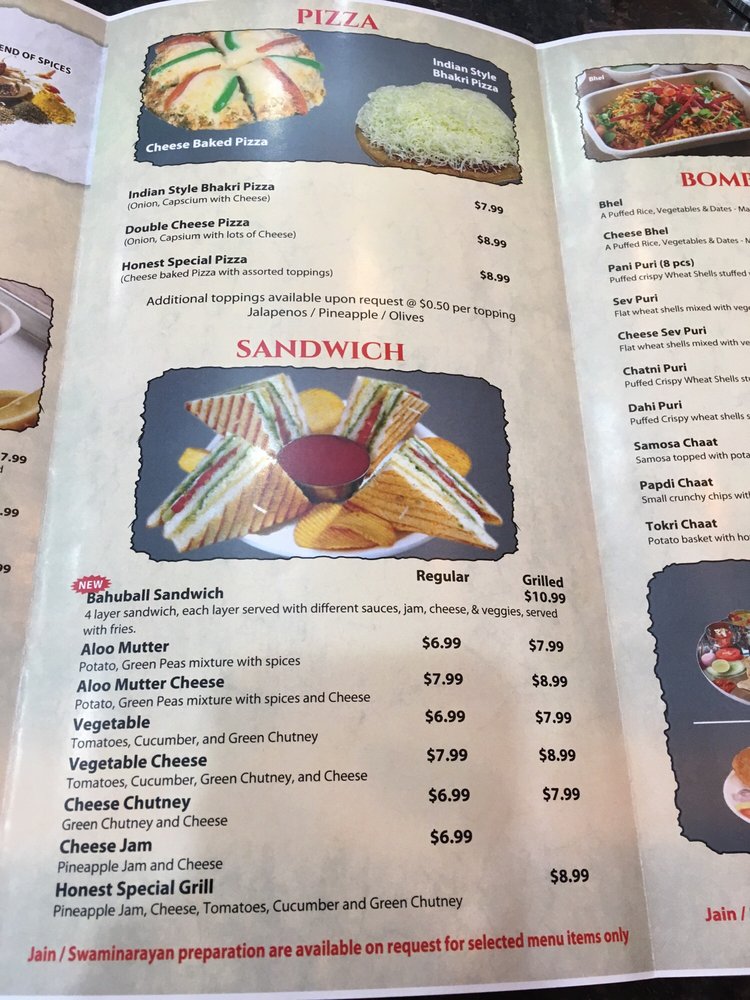 Customers rave about the fresh, made-to-order dishes, like the standout Bahubali Sandwich and Masala Dosa. With options for vegans and vegetarians, and conveniences such as outdoor seating, delivery, and catering, Honest Indian Restaurant welcomes everyone to indulge in their unique offerings.